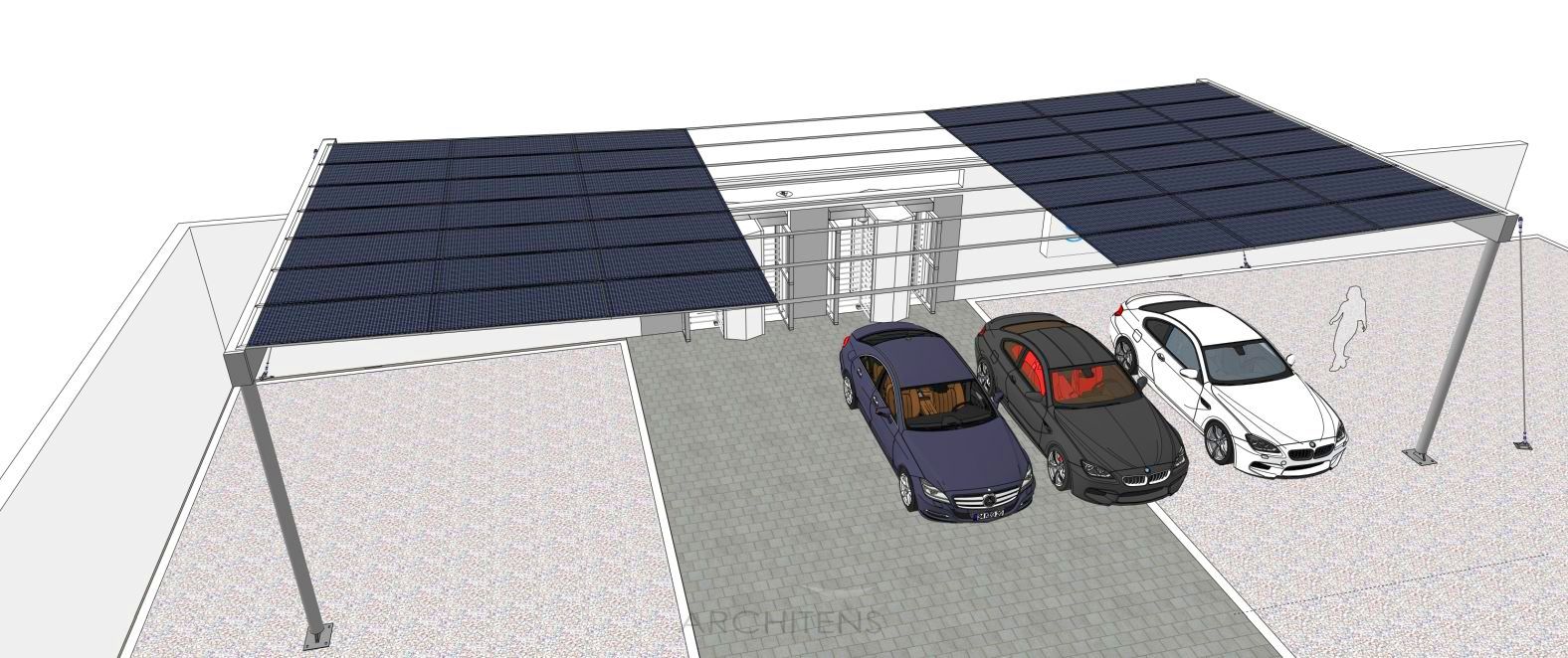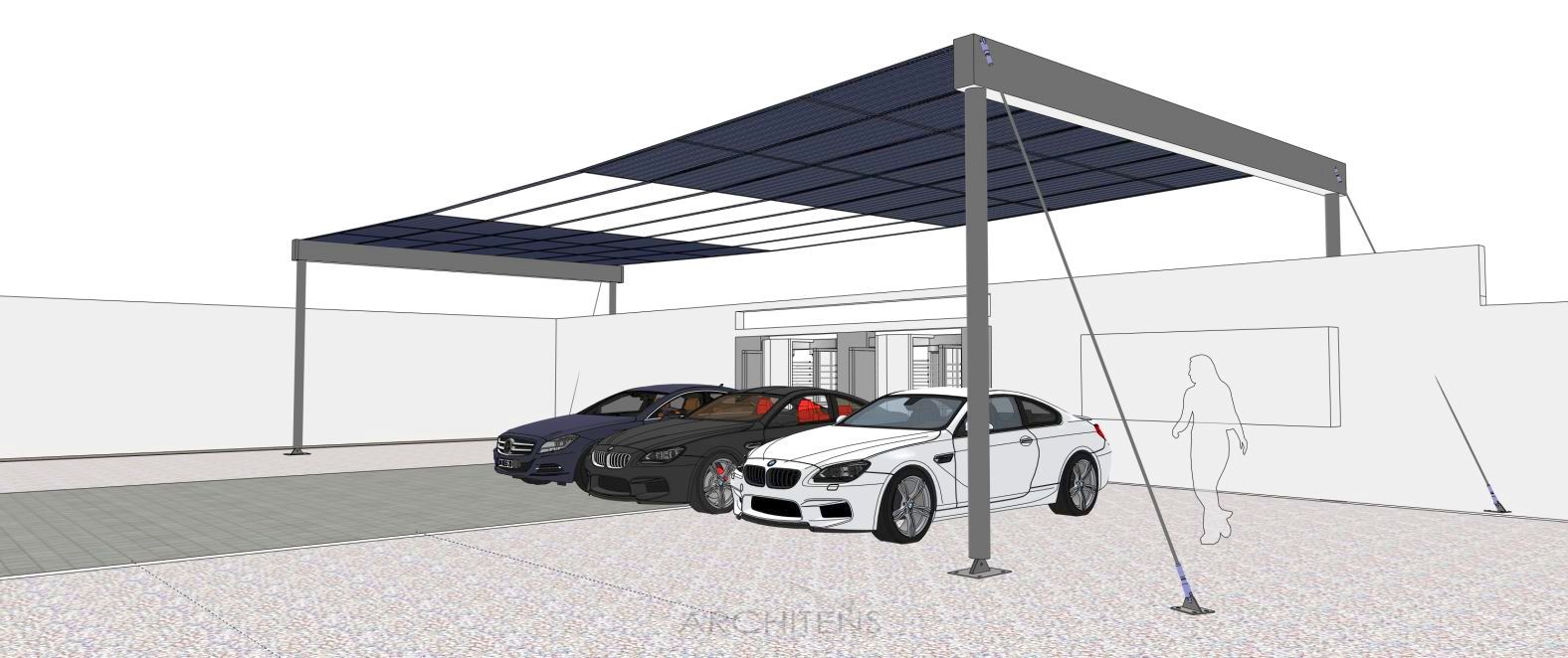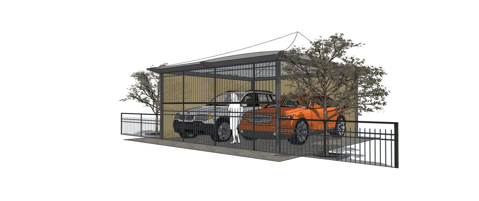 Le abri de voiture familial est une solution de couverture légère et fonctionnelle, pensée pour le quotidien des familles. Il garantit un espace protégé pour deux voitures et intègre de manière organisée des zones dédiées à deux vélos et deux bacs à déchets, tout en conservant une architecture ouverte et élégante.