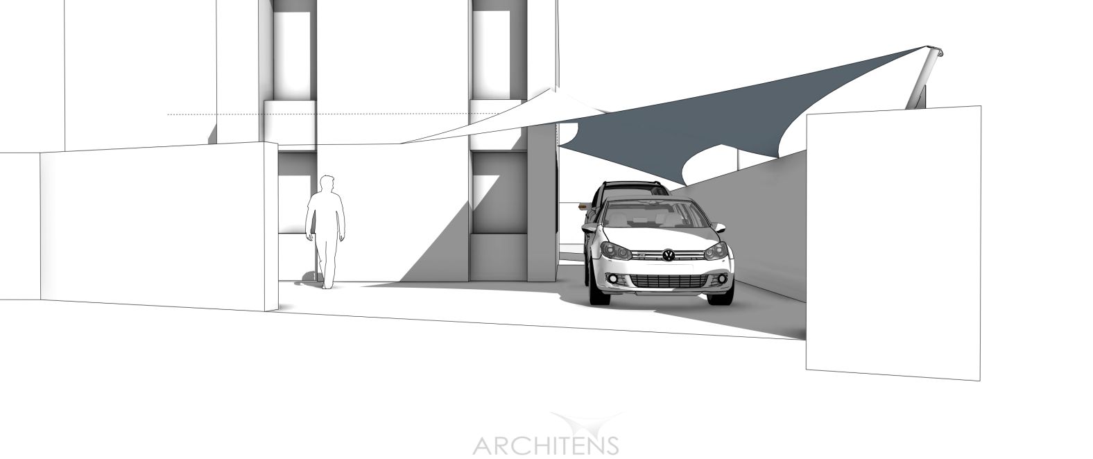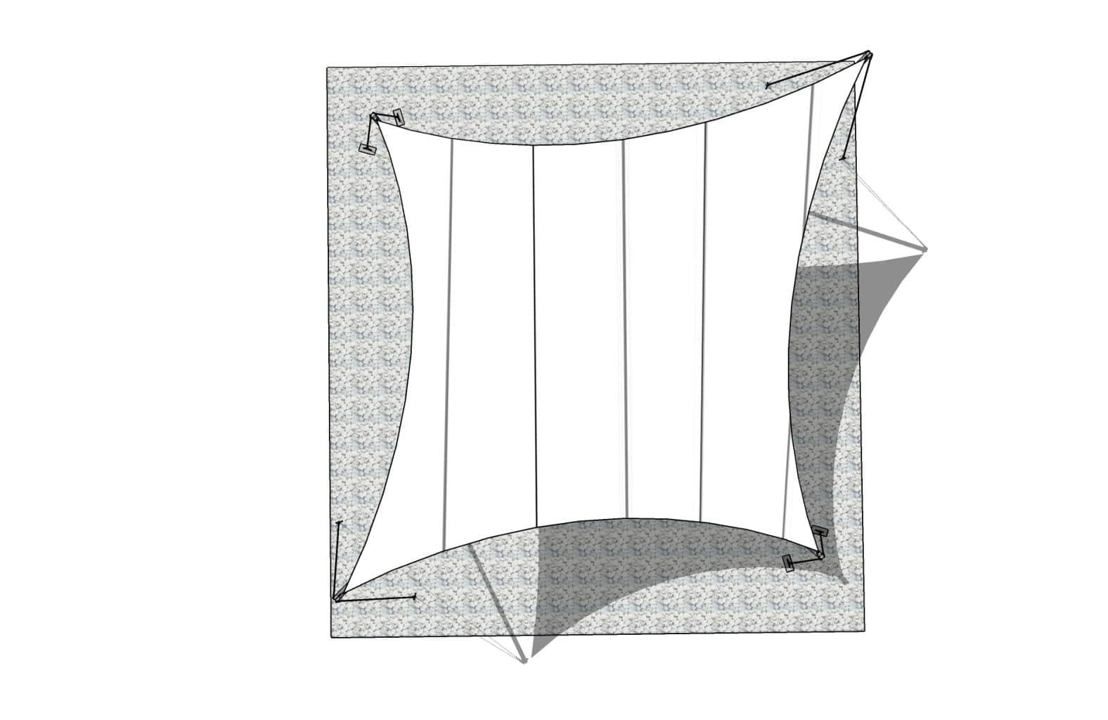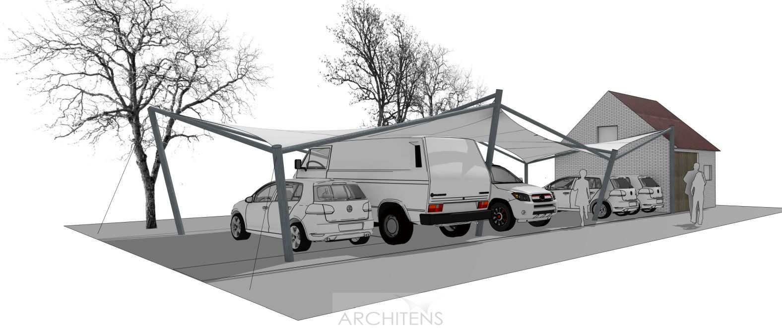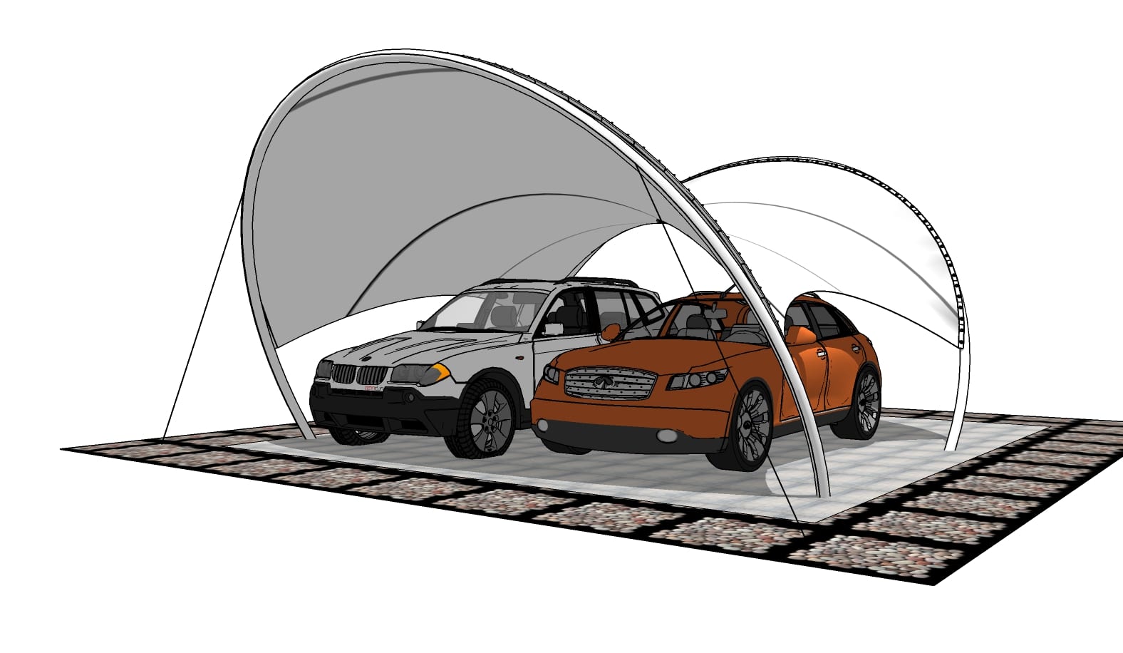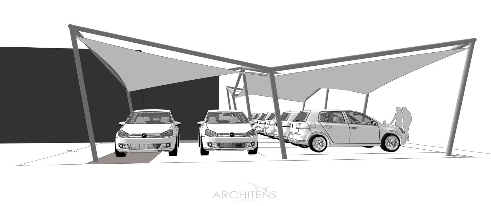 La membrane textile tendue, portée par une structure fine en acier, assure une protection efficace contre le soleil, la pluie et la neige, tout en favorisant une ventilation naturelle. Sa géométrie contemporaine s’intègre harmonieusement dans les environnements résidentiels et valorise l’espace extérieur.