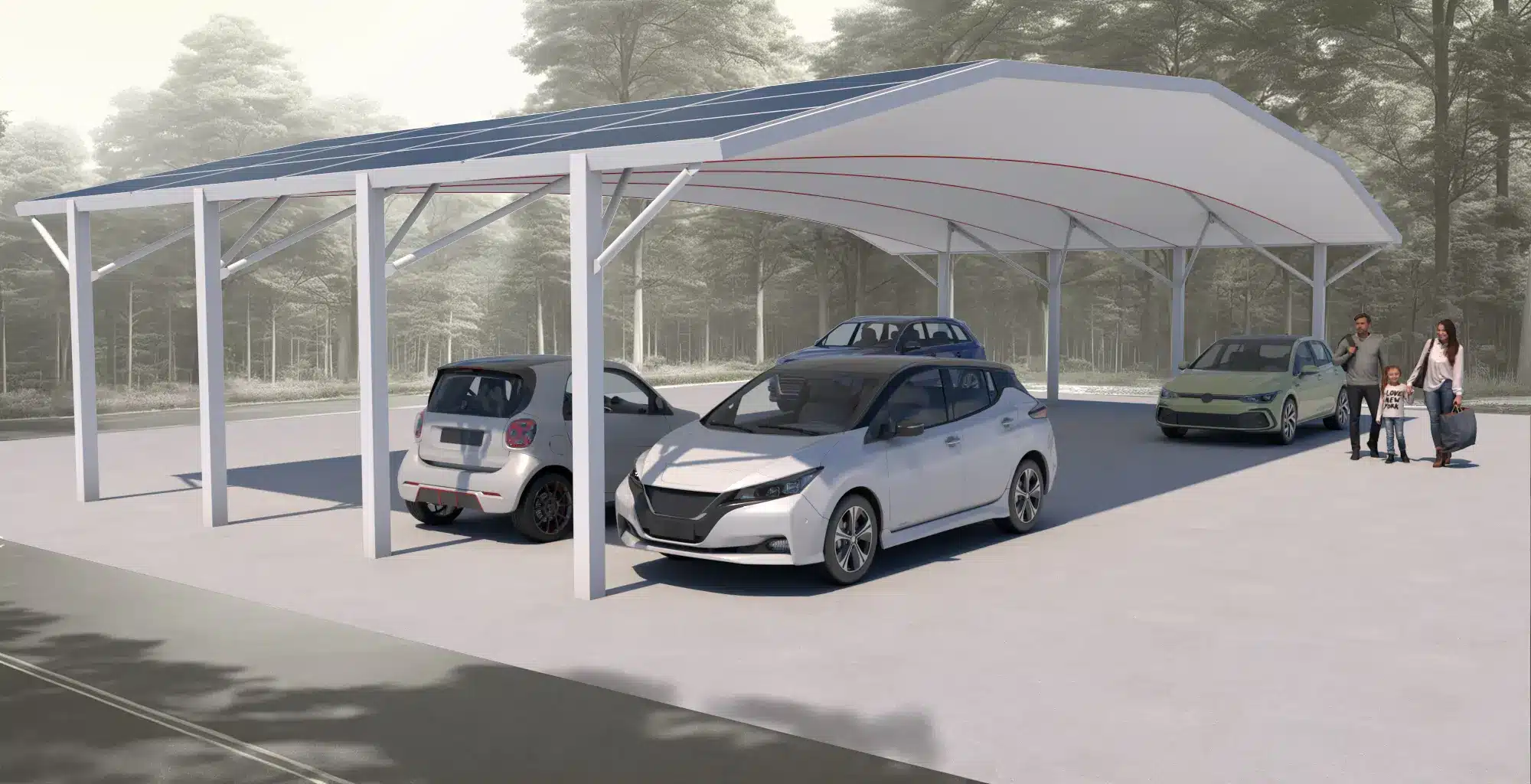 Lage: Tunisie, Sousse Realisierung: 08.2017 Fläche: 1740m² Gewebe: Ferrari type IV Struktur : Stahlstruktur feuerverzinkt Seile 1x190x Ø20mm und Spannelementen feuerverzinkt 1 1