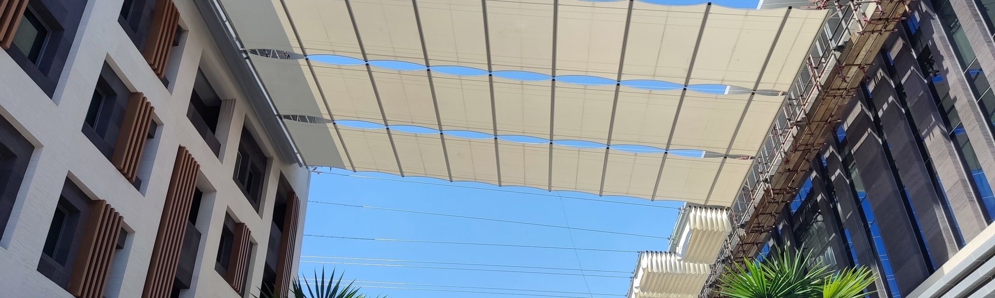 • Mécanisme pliable : Intègre un système qui permet de replier la toile facilement, souvent à l’aide de poulies ou de dispositifs de tension. Cela permet de ranger la toile lorsqu’elle n’est pas utilisée ou de réduire l’ombre selon les besoins.